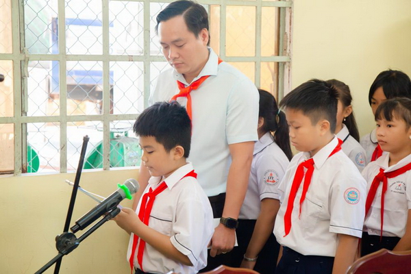 Tham dự chương trình có các giáo viên làm Tổng phụ trách Đội cùng đông đảo ĐVTN và các em thiếu nhi có thành tích học tập xuất sắc trên địa bàn thành phố Thuận An.