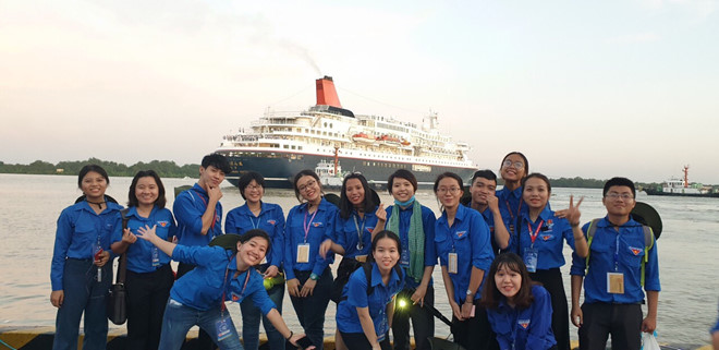 Thân (thứ 3, từ trái qua) trong ban tổ chức đón đại biểu Tàu thanh niên Đông Nam Á và Nhật Bản - SSEAYP 2019. NVCC
