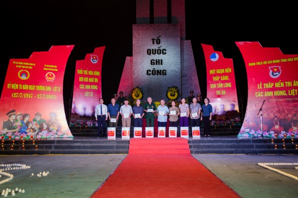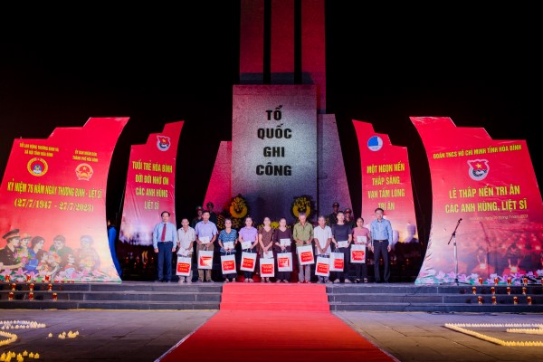 Kỷ niệm 76 năm ngày Thương binh - Liệt sĩ, với đạo lý “Uống nước nhớ nguồn”, tuổi trẻ tỉnh Hòa Bình đã cùng các cấp, các ngành, đơn vị, doanh nghiệp tổ chức nhiều hoạt động ý nghĩa như: Phối hợp, huy động lực lượng ĐVTN xây mới và tu sửa hàng trăm ngôi nhà cho gia đình người có công; trao hàng nghìn suất quà cho các gia đình thương binh, liệt sĩ, Mẹ Việt Nam anh hùng, người có công; hàng trăm ngày công lao động làm đẹp cảnh quan môi trường trong khu vực đài, nhà bia tưởng niệm liệt sĩ, nghĩa trang liệt sĩ, tu sửa các phần mộ liệt sĩ; tổ chức Thắp nến tri ân các anh hùng liệt sĩ tại tất cả nghĩa trang liệt sĩ, đài tưởng niệm trong toàn tỉnh; tổ chức khám, cấp phát thuốc miễn phí, chăm sóc sức khỏe các thương, bệnh binh, thân nhân liệt sĩ, người có công với cách mạng…