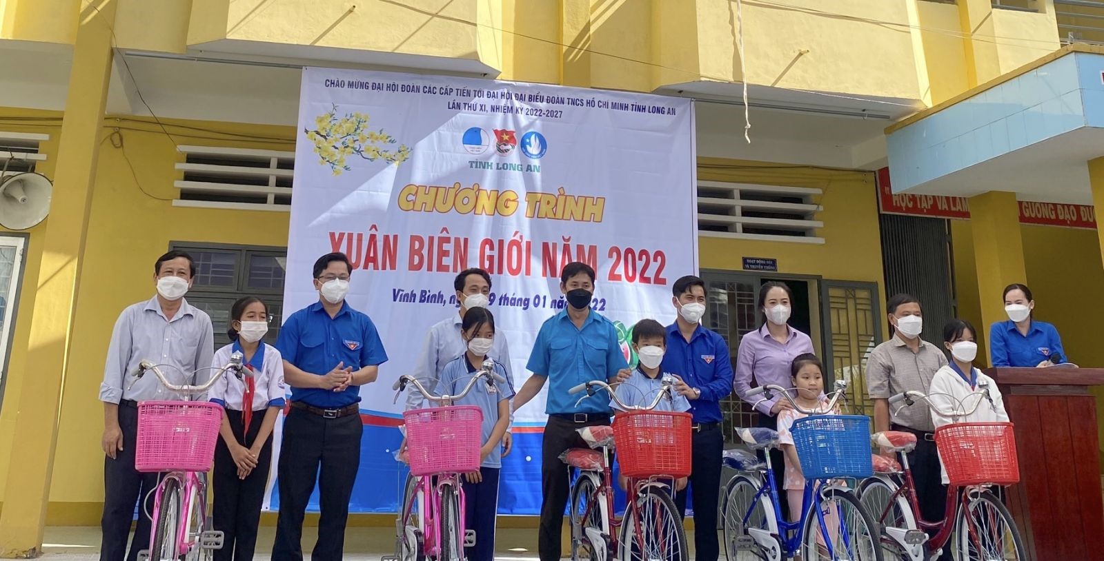 Để tạo điều kiện thuận lợi các em học sinh tiếp tục đến trường, Huyện đoàn Đức Hòa còn trao tặng 5 xe đạp cho các em học sinh nghèo vượt khó học giỏi. Phần quà ý nghĩa nhằm tiếp sức, động viên các em yên tâm đến trường, chăm ngoan, học tốt.