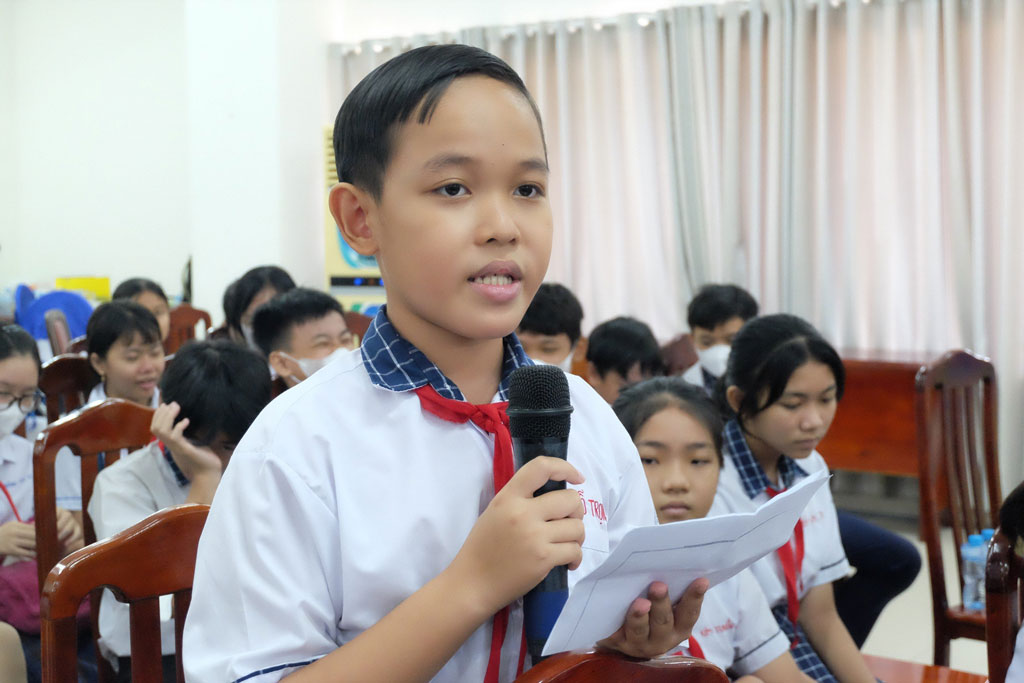 Vinh dự là một trong 200 đội viên, HS có cơ hội gặp gỡ, tiếp xúc với đại biểu Quốc hội, HĐND tỉnh, em Đỗ Trọng (HS lớp 7/7, Trường THCS Thống Nhất, TP.Tân An) chia sẻ: “Đây là cơ hội quý giá với em để hiểu rõ hơn về công tác bảo vệ, chăm lo cho trẻ em. Em sẽ cố gắng học tập, rèn luyện bản thân thật tốt để sau này có thể trở thành đại biểu Quốc hội, đại biểu HĐND như các cô, chú để trở thành “tiếng nói của Nhân dân”, góp phần xây dựng đất nước ngày càng phát triển”.
