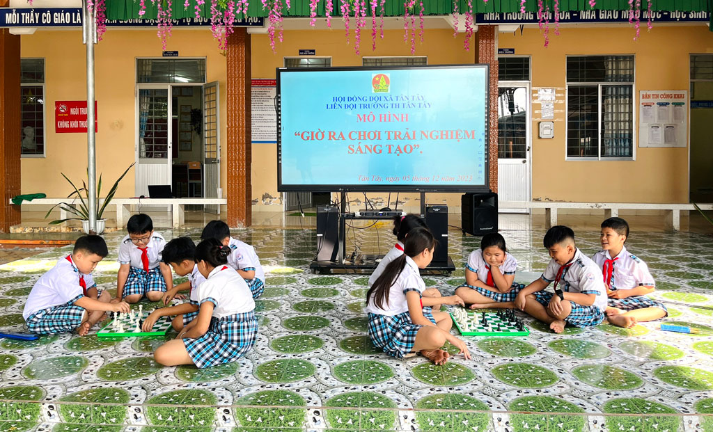 Để đội viên, HS phát triển bản thân toàn diện, HĐĐ các cấp trong huyện luôn tạo môi trường tốt nhất cho các em thực hiện tốt 5 điều Bác Hồ dạy, trong đó có thực hiện mô hình Giờ ra chơi trải nghiệm, sáng tạo. Là trường được đánh giá thực hiện tốt của huyện Thạnh Hóa, Trường Tiểu học Tân Tây (xã Tân Tây) có cách làm sáng tạo với nhiều hoạt động như thiết kế các mô hình từ vật dụng tái chế, nghiên cứu khoa học về sự sinh trưởng của hoa lá, đọc sách, các trò chơi dân gian như ô ăn quan, cò chẹp,... thu hút sự tham gia tích cực của hơn 225 đội viên, HS tham gia.