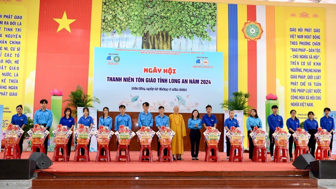 Tại chương trình Tỉnh đoàn- Hội Liên hiệp Thanh niên Việt Nam tỉnh Long An phối hợp Giáo Hội Phật Giáo Việt Nam tỉnh trao tặng 50 phần quà cho các Hội viên, thanh niên Phật giáo có hoàn cảnh khó khăn trên địa bàn huyện Đức Hòa.