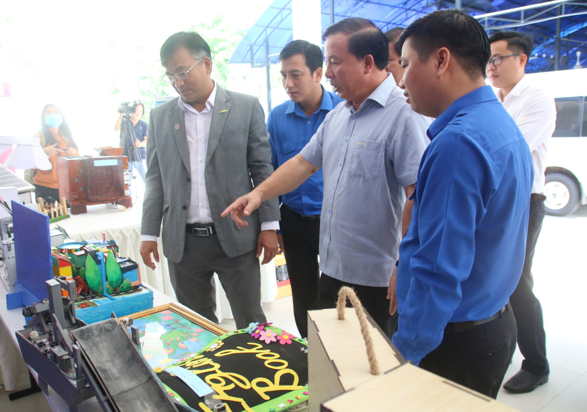 Đồng chí Nguyễn Văn Út - Chủ tịch UBND tỉnh Long An tham quan các mô hình, sản phẩm khởi nghiệp