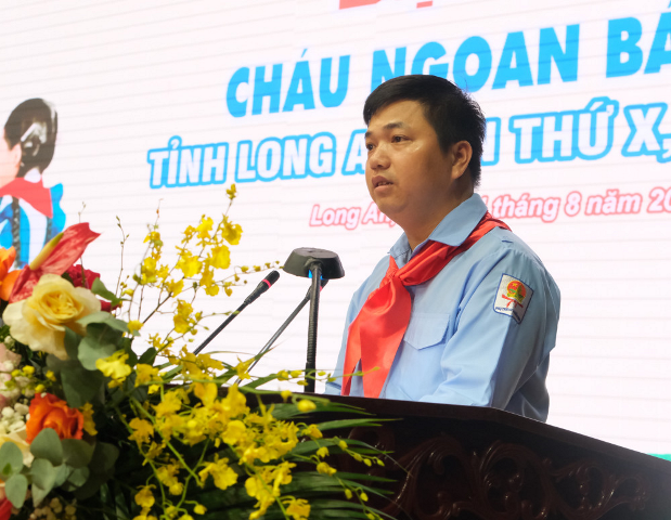 Phó Bí thư Tỉnh Đoàn, Chủ tịch Hội đồng Đội tỉnh Long An - Phạm Văn Hậu phát biểu tại đại hội