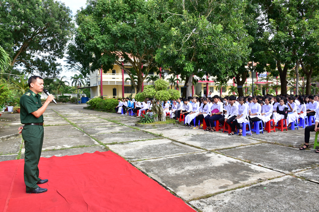 Báo cáo viên của Bộ chỉ huy Bộ đội biên phòng tỉnh báo cáo tại chương trình