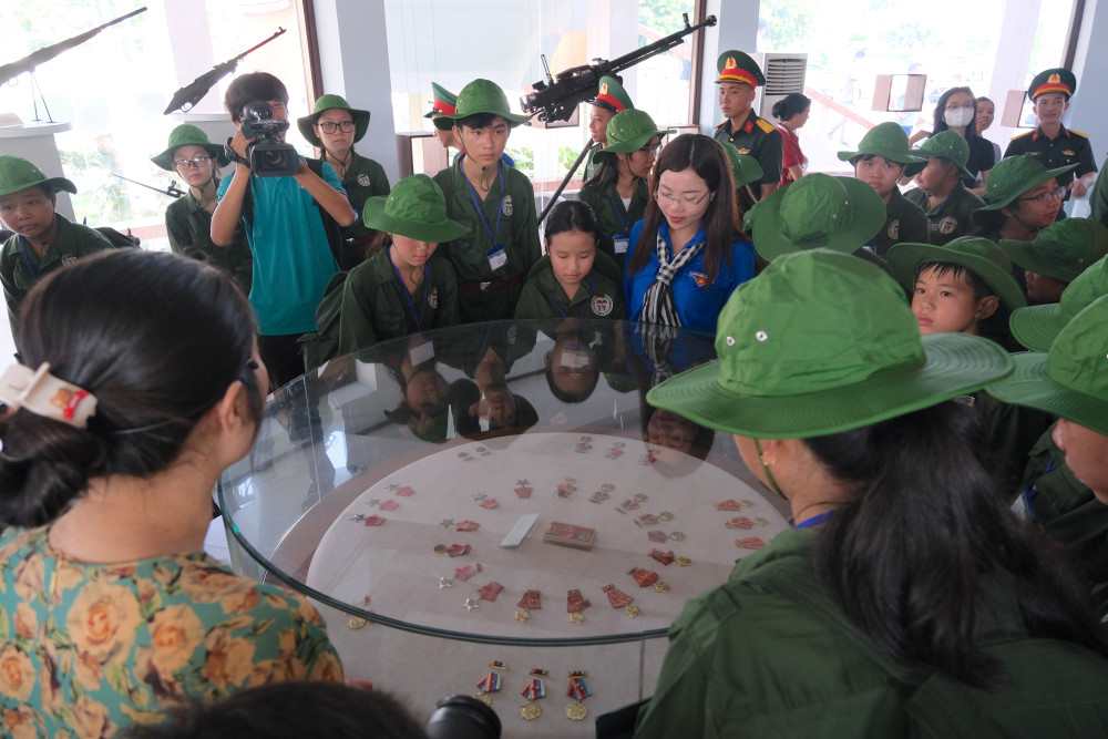 Các "chiến sĩ" nhỏ tham quan tại khu trưng bày