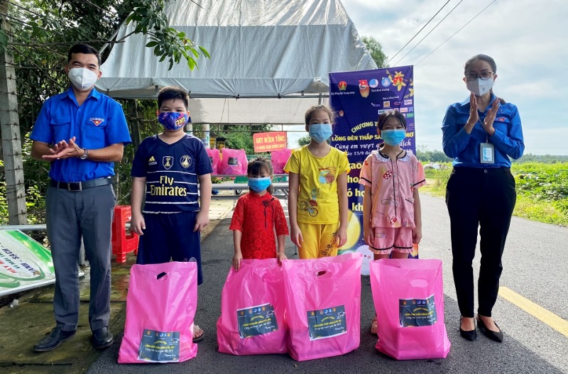 Bên cạnh đó, các đoàn công tác do Ban Thường vụ Tỉnh Đoàn cũng đã trao tặng 800 phần quà trị giá gần 500 triệu đồng cho thiếu nhi tại các khu phong tỏa, cách ly tại các huyện, thị, thành phố còn lại trong toàn tỉnh.