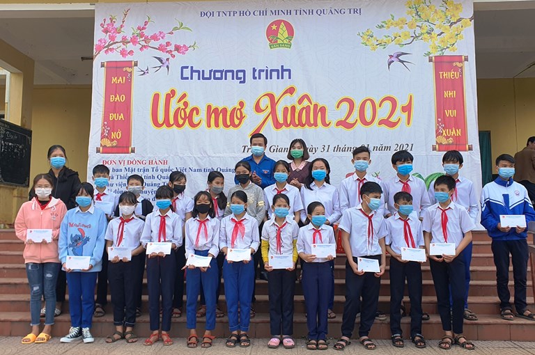 Đây là chương trình được Hội đồng Đội tỉnh tổ chức thường niên vào các dịp trước thêm Tết Nguyên đán hằng năm. Trong chương trình, Ban Tổ chức đã trao tặng 01 Công trình “Sân chơi thiếu nhi” cho xã Đoàn Trung Giang; tặng 02km “Ánh sáng đường quê” cho Thôn Hà Lợi Trung; trao 50 bình lọc nước vật lí, 30 suất học bổng cho học sinh trường TH&THCS Trung Giang, mỗi suất trị giá 500 ngìn đồng; trao 23 suất học bổng cho các em học sinh có hoàn cảnh khó khăn trong toàn tỉnh, mỗi suất trị giá 01 triệu đồng; trao tặng 01 bộ trống đội và 1.000 vật phẩm vở, bút, dụng cụ học tập cho Liên đội trường Tiểu học và Trung học cơ sở Trung Giang, tổng trị giá hoạt động gần 300 triệu đồng.