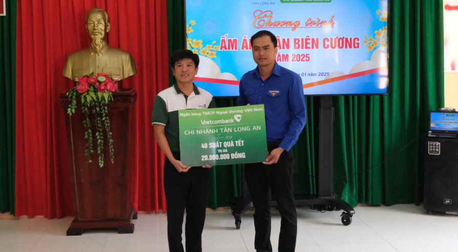 Trong đó, Ngân hàng Thương mại Cổ phần Ngoại thương Việt Nam - Chi nhánh Tân Long An trao tặng 70 suất quà tết cho gia đình chính sách, học sinh có hoàn cảnh khó khăn tại xã Bình Thạnh, huyện Mộc Hóa và thị xã Kiến Tường. Mỗi phần quà trị giá 500.000 đồng.