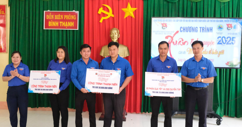 Bên cạnh đó, Tỉnh đoàn Long An và Đảng ủy Khối Cơ quan và Doanh nghiệp 2 tỉnh: Long An, Trà Vinh gửi tặng những phần quà cho Đồn Biên phòng Bình Thạnh và Đồn Biên phòng Cửa khẩu Quốc tế Bình Hiệp; đồng thời thăm hỏi, động viên, tặng quà cho cán bộ, chiến sĩ đang làm nhiệm vụ bảo vệ biên cương tại đây.