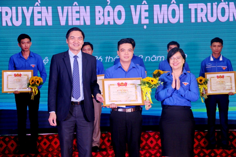 Đại diện Đoàn xã Gáo Giồng, huyện Cao Lãnh, tỉnh Đồng Tháp nhận giải Nhất cuộc thi Dấu ấn tuyên truyền viên bảo vệ môi trường năm 2019. |