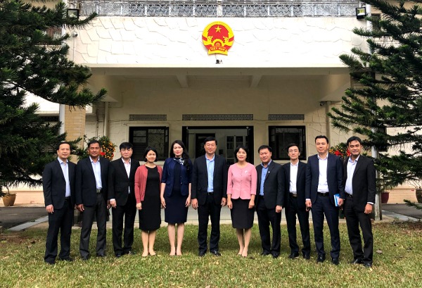 Các đại biểu đến thăm và làm việc với Đại sứ quán Việt Nam tại Singapore