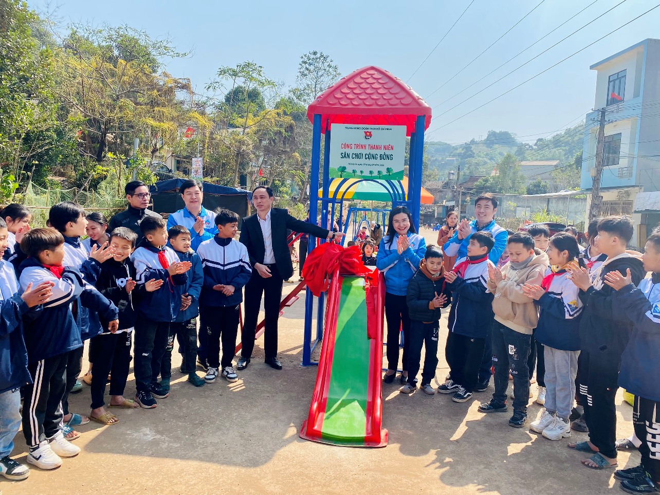 Các đồng chí lãnh đạo tặng quà, khánh thành sân chơi cho trẻ em