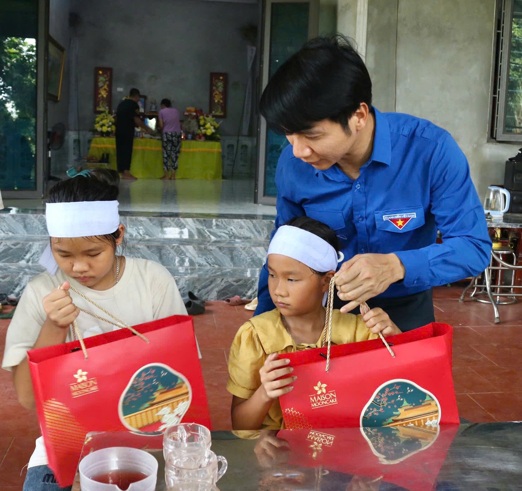 Anh Nguyễn Xuân Hiếu, Phó Trưởng ban Đoàn kết tập hợp thanh niên T.Ư Đoàn, Phó Chủ tịch T.Ư Hội LHTN Việt Nam trao tặng nguồn lực trị giá 220 triệu đồng là 100kg Cloramin vào 500 túi thuốc cho địa phương