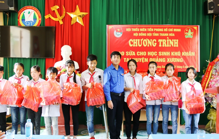 Tại chương trình, đại diện lãnh đạo Tỉnh đoàn, Hội đồng Đội tỉnh đã trao 60 suất quà cho 60 em học sinh là con em các gia đình có hoàn cảnh khó khăn, gia đình chính sách, có bố mẹ là lao động tự do bị ảnh hưởng bởi dịch bệnh COVID -19 của các trường THCS Quảng Thạch (huyện Quảng Xương), tiểu học Thiệu Quang (huyện Thiệu Hóa), trường Tiểu học và THCS Lĩnh Toại (huyện Hà Trung). Mỗi suất quà cho các em gồm 6 dây sữa, 50 quả trứng gà.