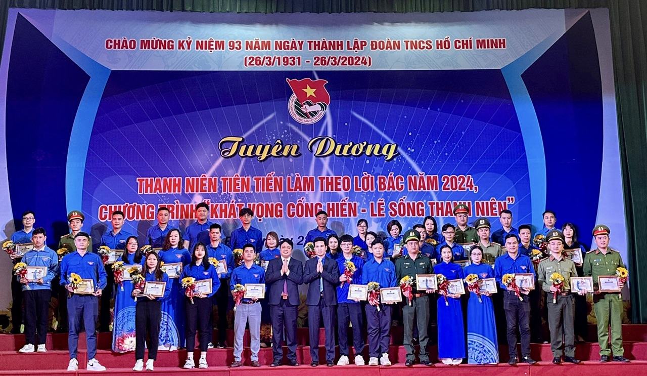 Trong khuôn khổ chương trình, Ban Thường vụ Tỉnh Đoàn đã trao tặng 20 Kỷ niệm chương “Vì thế hệ trẻ”, trao học bổng "Vững tương lai" và tuyên dương 42 thanh niên tiên tiến làm theo lời Bác năm 2024.