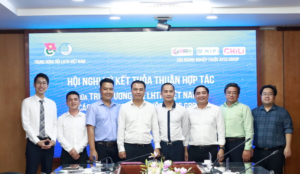 Đồng chí Nguyễn Hải Minh - Phó Chủ tịch thường trực Hội LHTN Việt Nam; đồng chí Lê Hải Bình - Chủ tịch AXYS Group. Cùng đại diện công ty CP Mắt bão, công ty CP Chili, công ty cổ phần ODS thuộc AXYS Group chủ trì hội ghị