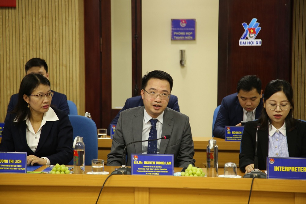 Đồng chí Nguyễn Tường Lâm- Bí thư BCH Trung ương Đoàn, Phó Chủ nhiệm thường trực Ủy ban quốc gia về thanh niên Việt Nam phát biểu tại buổi làm việc