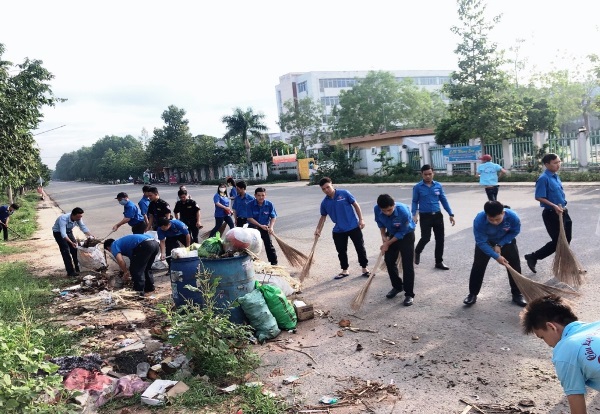 Thị Đoàn Tân Uyên dọn dẹp vệ sinh các tuyến đường, làm vệ sinh 15km đường giao thông; Huyện Đoàn Dầu Tiếng tổ chức dọn dẹp vệ sinh trên tuyến đường DH704, quét dọn, chăm sóc nhà bia ghi tên Liệt sỹ xã Minh Tân.
