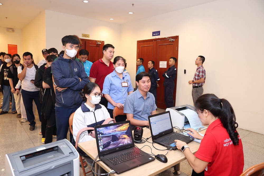 ĐVTN, CBCNV Tập đoàn Bưu chính Viễn thông Việt Nam đăng ký, kiểm tra sức khỏe trước khi hiến máu tình nguyện