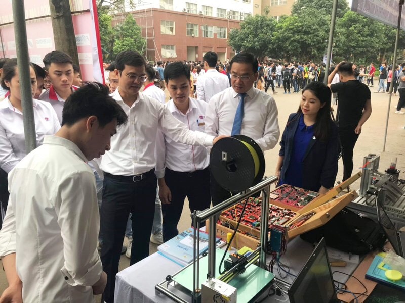 Các đại biểu tham quan các gian trưng bày sản phẩm công nghệ sáng tạo của sinh viên Thủ đô |