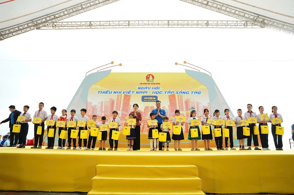 Nhân dịp này, Hội đồng Đội Trung ương, Trung tâm Hỗ trợ và Phát triển Thiếu nhi Việt Nam cùng Công ty Cổ phần Masan Meatlife - Thương hiệu Heo Cao Bồi đã trao 50 suất học bổng (mỗi suất 1 triệu đồng) cho thiếu nhi có hoàn cảnh khó khăn vươn lên học tốt tại thành phố Đà Nẵng.