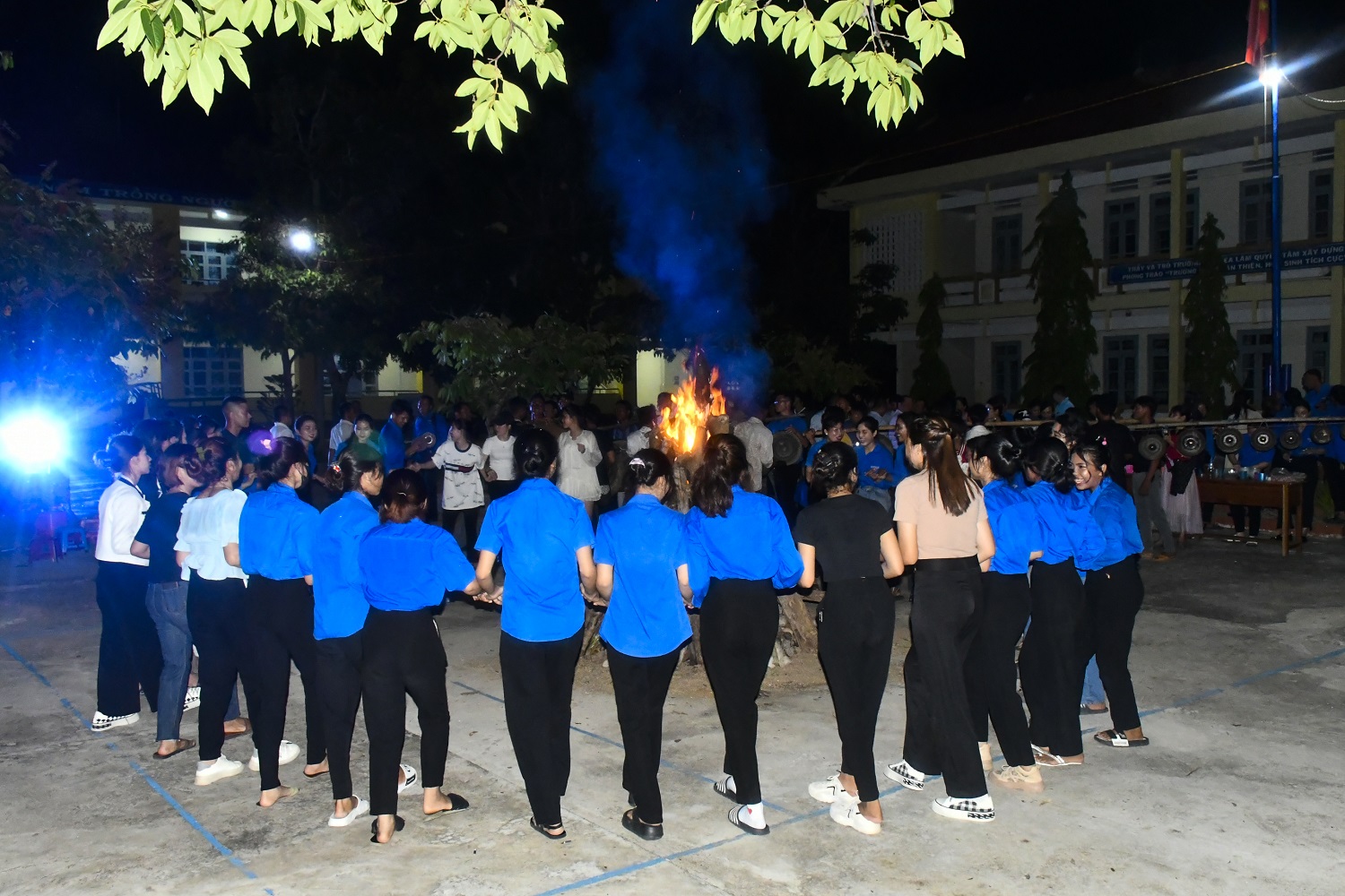 Cán bộ, đoàn viên, hội viên, thanh niên giao lưu, đốt lửa trại, hát múa cồng chiêng.