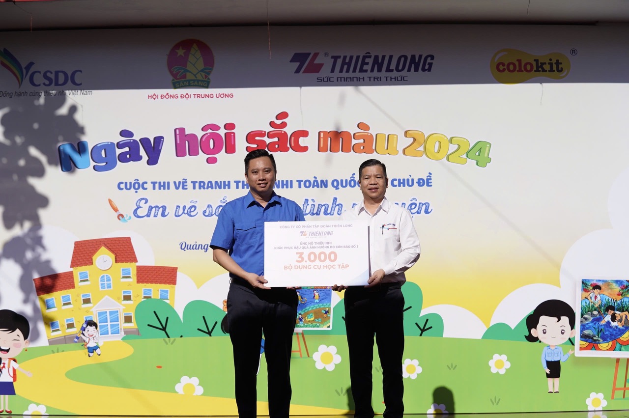 Trong khuôn khổ chương trình Hội đồng Đội Trung ương đã tiếp nhận 3000 bộ dụng cụ học tập từ Công ty Cổ phần Tập đoàn Thiên Long để dành tặng cho thiếu nhi vùng bị ảnh hưởng bởi cơn bão số 3 với thông điệp “Vượt thiên tai - Viết tiếp tương lai”.