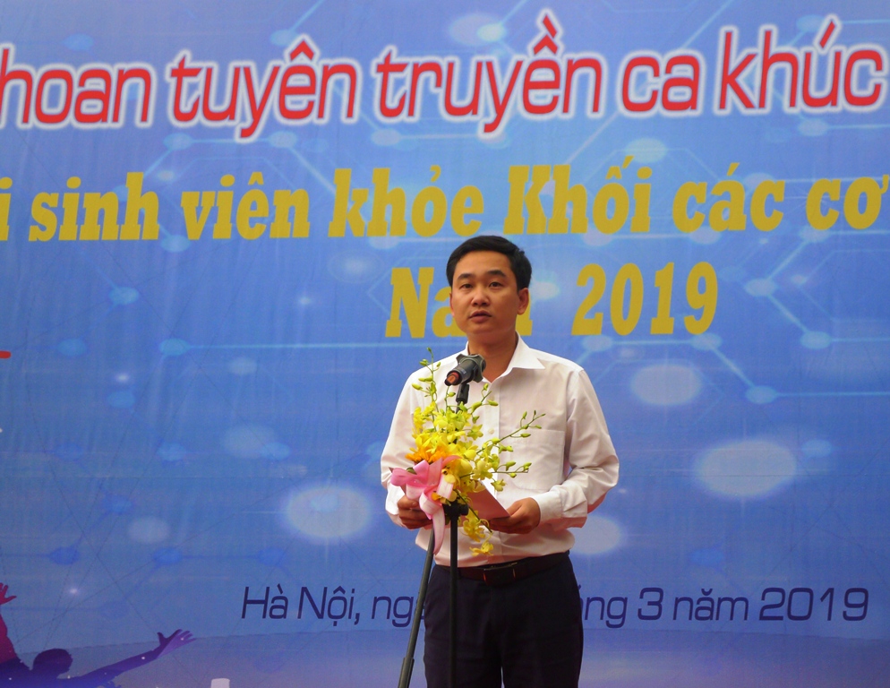 Đồng chí Trần Quyết Thắng - Phó Bí thư Đoàn Thanh niên Khối các cơ quan Trung ương phát biểu tại Ngày hội