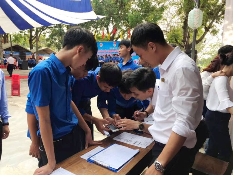 Đoàn viên thanh niên trao đổi, tìm hiểu thông tin về cơ hội nghề nghiệp, việc làm tại chương trình