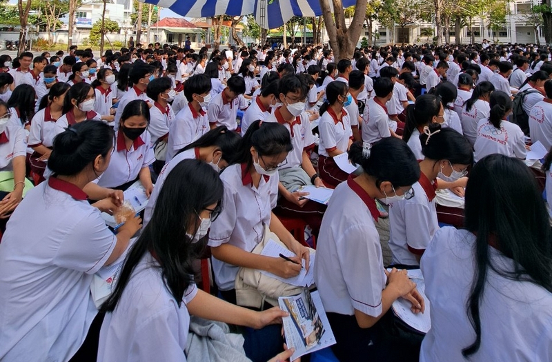 Ngày Hội tư vấn hướng nghiệp diễn ra trong không khí rộn ràng, vui tươi, nhộn nhịp và đầy háo hức của hơn 600 học sinh khối 12 của Trường THPT Lý Thường Kiệt và THPT Nguyễn Huệ; cùng với sự tham gia của các đơn vị tư vấn gồm: Trung tâm Hướng nghiệp Thành phố Hồ Chí Minh, các trường Cao đẳng, Đại học ngoài tỉnh Bình Thuận.