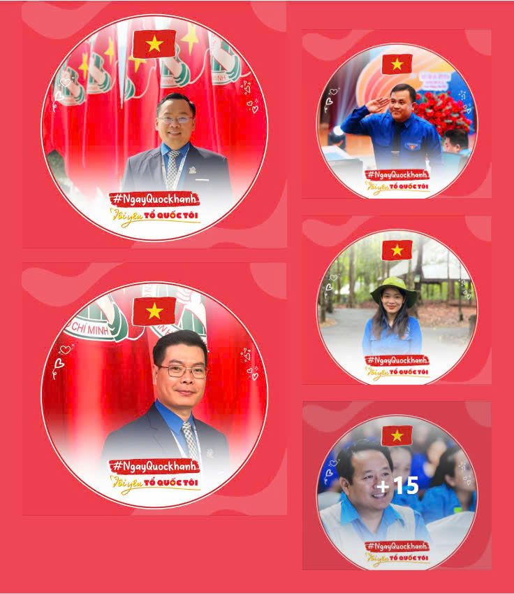 Các bạn đoàn viên thanh niên đăng tải hình ảnh có khung chào mừng Ngày Quốc khánh
