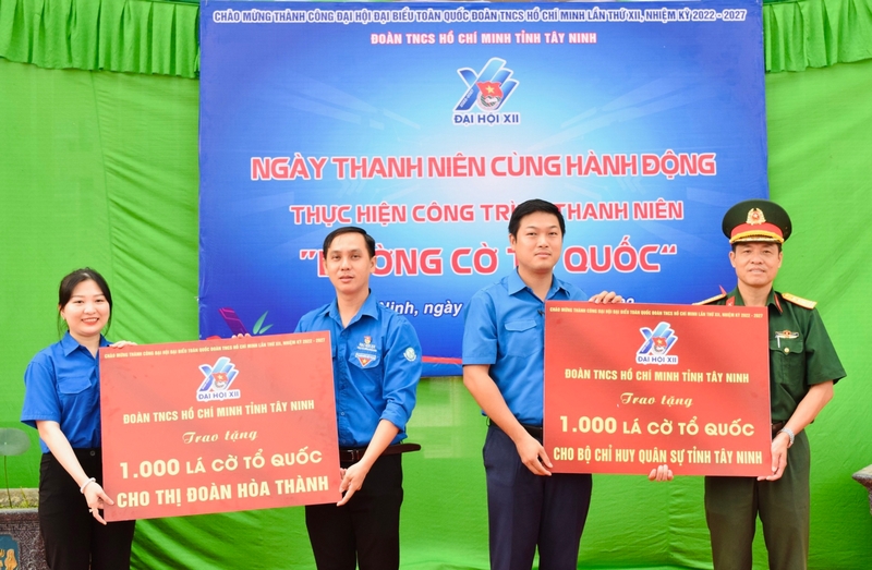 Trong Ngày thanhn niên cùng hành động, 1.000 lá cờ Tổ quốc đã được trao cho Thị Đoàn Hòa Thành và 1.000 lá cờ Tổ quốc trao cho Bộ CHQS Tỉnh Tây Ninh. Bên cạnh đó, Ban tổ chức cũng đã trao tặng hơn 2.000 lá cờ tổ quốc cho các huyên, thị, thành đoàn trên địa bàn tỉnh Tây Ninh. Đồng thời phục vụ cho việc thực hiện 08 Công trình thanh niên “Đường cờ Tổ quốc”, tại chương trình, theo phân bổ của Ban Thường vụ Thị đoàn Hòa Thành mỗi xã, phường Đoàn đã tiếp nhận 100 lá cờ Tổ quốc.