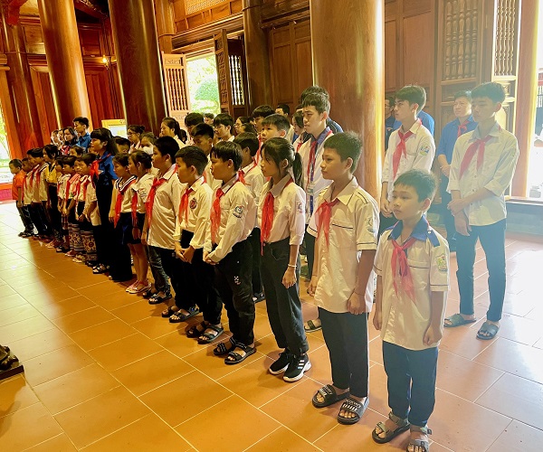 Các em thiếu nhi được tham gia dâng hoa, dâng hương, tham quan Khu Di tích lịch sử Quốc gia đặc biệt Kim Liên, huyện Nam Đàn