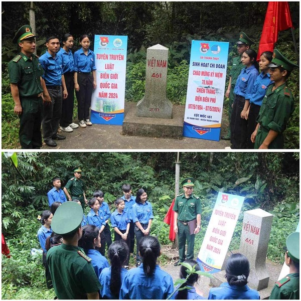 Tại cột mốc quốc gia Việt Nam - Lào số 460, Ban Thường vụ huyện Đoàn Thanh Chương tổ chức lễ chào cờ tôi yêu tổ quốc tôi; thăm tặng quà cho các cụ từng trực tiếp tham gia chiến dịch Điện Biên Phủ