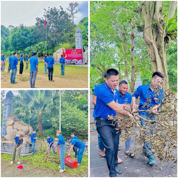 Tại Khu di tích lịch sử đền Choọng, xã Châu Lý, huyện Quỳ Hợp, Ban Thường vụ Huyện đoàn Tổ chức lễ chào cờ Tôi yêu Tổ quốc tôi, dâng hương dâng hoa và quét dọn vệ sinh tại Khu di tích lịch sử.