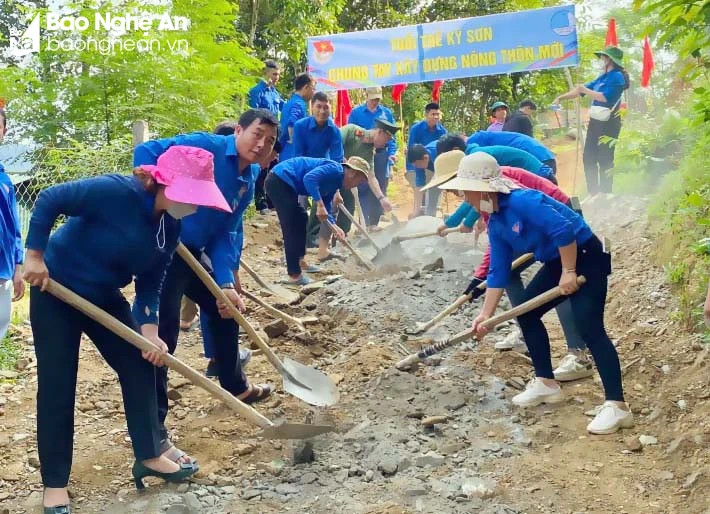 Tuổi trẻ toàn tỉnh triển khai nhiều công trình, phần việc ý nghĩa trong Chiến dịch Thanh niên tình nguyện Hè, góp phần thay đổi diện mạo làng quê. Ảnh: Huyện đoàn Kỳ Sơn