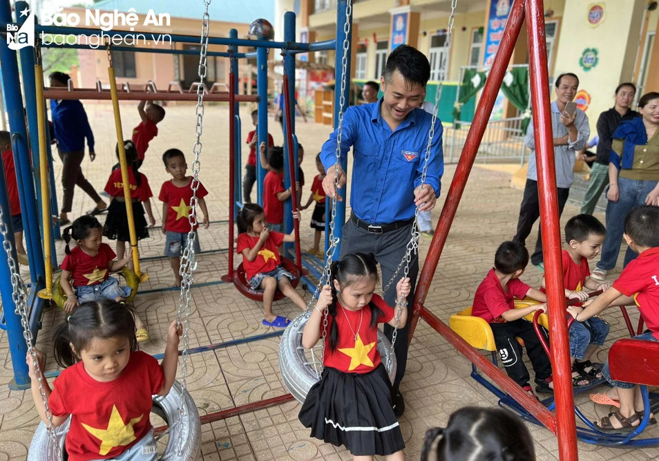 Tuổi trẻ huyện Quế Phong bàn giao nhiều công trình sân chơi thiếu nhi cho các em nhỏ trên địa bàn. Ảnh: Huyện đoàn Quế Phong