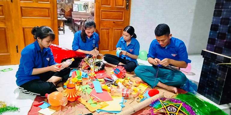 Đoàn viên xã Lĩnh Sơn – huyện Anh Sơn vui sinh hoạt Chi đoàn cùng làm đèn trung thu