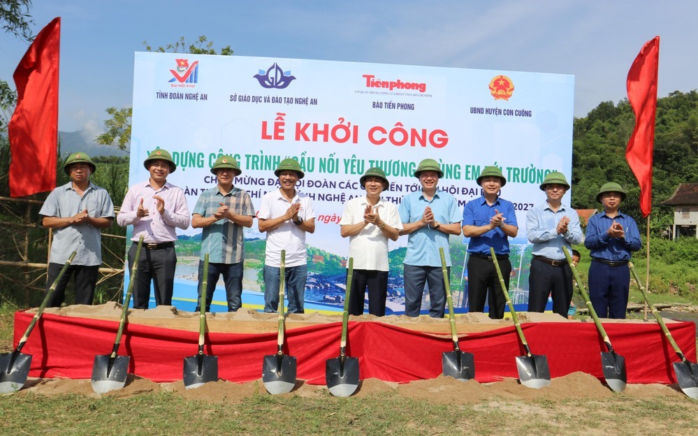 Ban Thường vụ Tỉnh đoàn Nghệ An phối hợp với các đơn vị khởi công xây dựng ba công trình thanh niên “Cầu nối yêu thương - Cùng em tới trường” mỗi công trình ước tính trị giá 1 tỷ đồng. Ảnh: Thanh Quỳnh