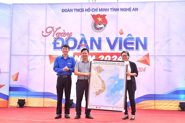 Trao tặng bản đồ Việt Nam cho Công ty CP may Minh Anh Tân Kỳ.