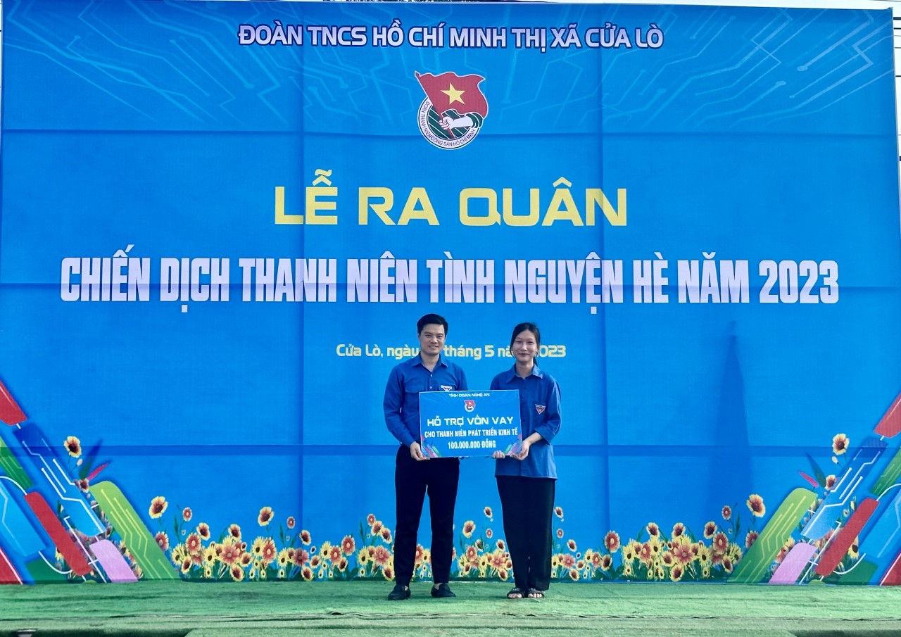 Tại Thị xã Cửa Lò, BTV Tỉnh đoàn đã giải ngân vốn vay 100.000.000 đồng cho thanh niên phát triển kinh tế; trao tặng túi vải, túi ni lông tự huỷ xây dựng chợ dân sinh giảm thiểu rác thải nhựa cùng một số hoạt động khác.