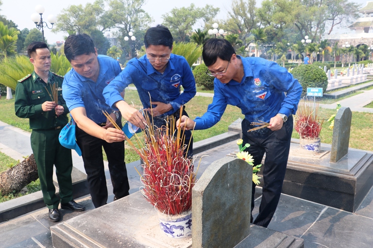 Tiếp đó, đoàn đã đến dâng hoa, dâng hương tại Nghĩa trang liệt sỹ Đồi A1 để tưởng nhớ công ơn của các Anh hùng Liệt sỹ đã hy sinh vì độc lập, tự do của Tổ quốc.