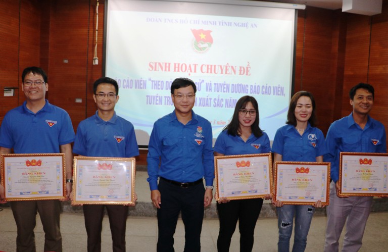 Cũng tại buổi sinh hoạt, 12 đồng chí là báo cáo viên, tuyên truyền viên có thành tích xuất sắc trong công tác tuyên truyền, định hướng thông tin, dư luận của ĐVTN trên mạng xã hội đã được tặng giấy khen của Ban Thường vụ Tỉnh đoàn Nghệ An.
