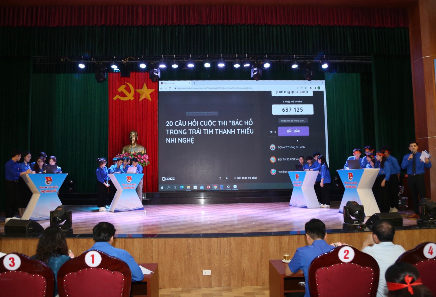 Tham dự chương trình có các đồng chí: Hoàng Đình Tuấn – Phó Trưởng Ban Dân vận Tỉnh ủy; Chu Bá Long - Phó Bí thư Đảng uỷ Khối các cơ quan; Lê Văn Lương - Ủy viên Ban Thường vụ Trung ương Đoàn, Bí thư Tỉnh đoàn cùng đại diện Ban giám hiệu Trường Đại học Vinh, Trường cao đẳng Việt - Đức Nghệ An, Trường cao đẳng Kỹ thuật Việt Nam - Hàn Quốc và hơn 300 bạn đoàn viên thanh niên đến tham dự và cổ vũ cuộc thi.
