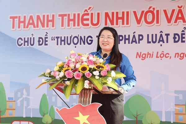 Phát biểu tại Ngày hội, đồng chí Nguyễn Thị Phương Thúy - Phó Bí thư Tỉnh đoàn, Chủ tịch Hội LHTN tỉnh mong muốn ĐVTN hãy phát huy vai trò gương mẫu, đi đầu trong thực hiện pháp luật về an toàn giao thông, chính các bạn sẽ là người truyền đi thông điệp “Thượng tôn pháp luật để xây dựng Văn hóa giao thông an toàn”. Đồng thời, đề nghị các cấp bộ Đoàn, Hội, Đội đẩy mạnh tuyên truyền, giáo dục nâng cao ý thức chấp hành pháp luật của đoàn viên thanh niên; tham mưu cho cấp ủy Đảng và chính quyền về chương trình phối hợp giữa Đoàn Thanh niên với các tổ chức trong công tác đảm bảo trật tự an toàn giao thông; tích cực chuyển đổi số trong triển khai các hoạt động, nhân rộng các mô hình, điển hình, đội hình tiêu biểu tham gia có hiệu quả Cuộc vận động “Thanh thiếu nhi với văn hoá giao thông”