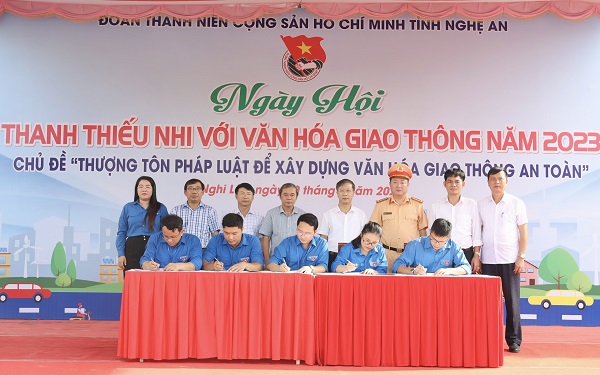 Đại biểu và ĐVTN ký cam kết hưởng ứng thực hiện các tiêu chí Năm An toàn giao thông năm 2023 và những năm tiếp theo
