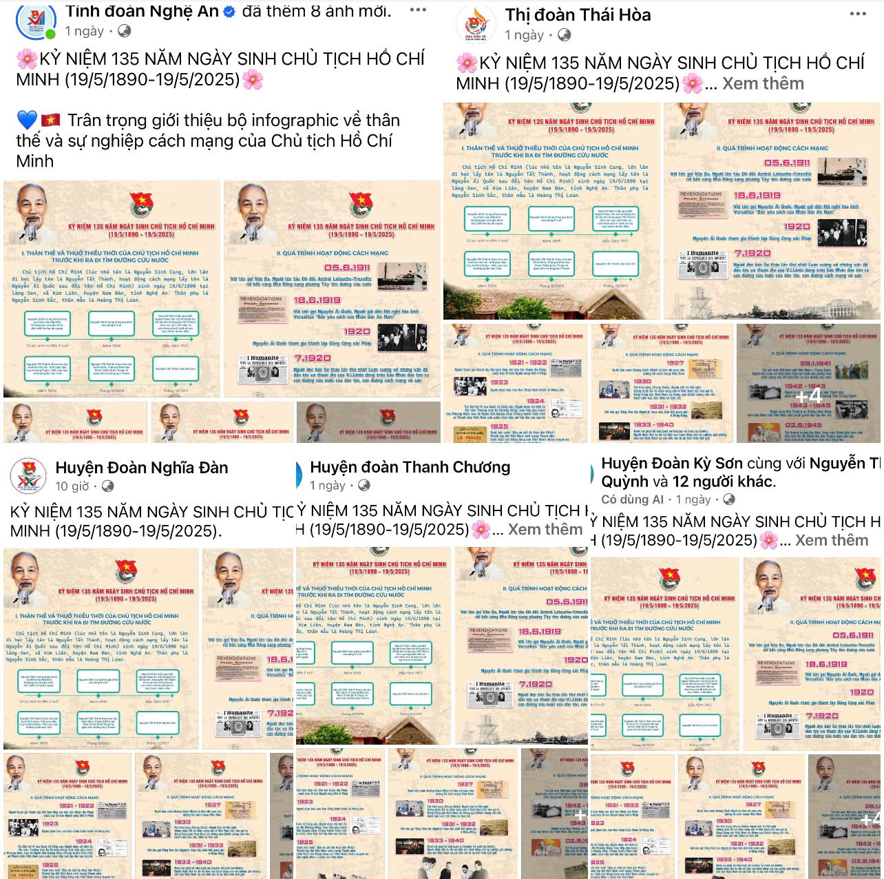 Mừng sinh nhật lần thứ 135 của Bác, đoàn thanh niên các cấp trong tỉnh đã tổ chức đợt sinh hoạt chính trị sâu rộng với chủ đề “Hành trình theo chân người thanh niên Nguyễn Tất Thành”, sinh hoạt “Mỗi tuần một câu chuyện về Bác” bằng nhiều hình thức sáng tạo, đa dạng. Điểm nổi bật trong đợt sinh hoạt này là các cấp bộ đoàn - hội - đội đã đẩy mạnh, phát huy hiệu quả công tác tuyên truyền thông qua phương tiện truyền thông, mạng xã hội tuyên truyền về cuộc đời và sự nghiệp của Chủ tịch Hồ Chí Minh, những câu nói, câu chuyện của Bác Hồ với thế hệ trẻ… Cùng với đó là đẩy mạnh tuyên truyền các điển hình tiên tiến học tập và làm theo lời Bác, những tấm gương đảng viên trẻ, đoàn viên, thanh niên ưu tú trên các lĩnh vực. Các hoạt động đó đã tạo hiệu ứng lan tỏa mạnh mẽ trên các kênh thông tin, các trang mạng xã hội và trong mỗi cán bộ, đoàn viên, thanh thiếu nhi.