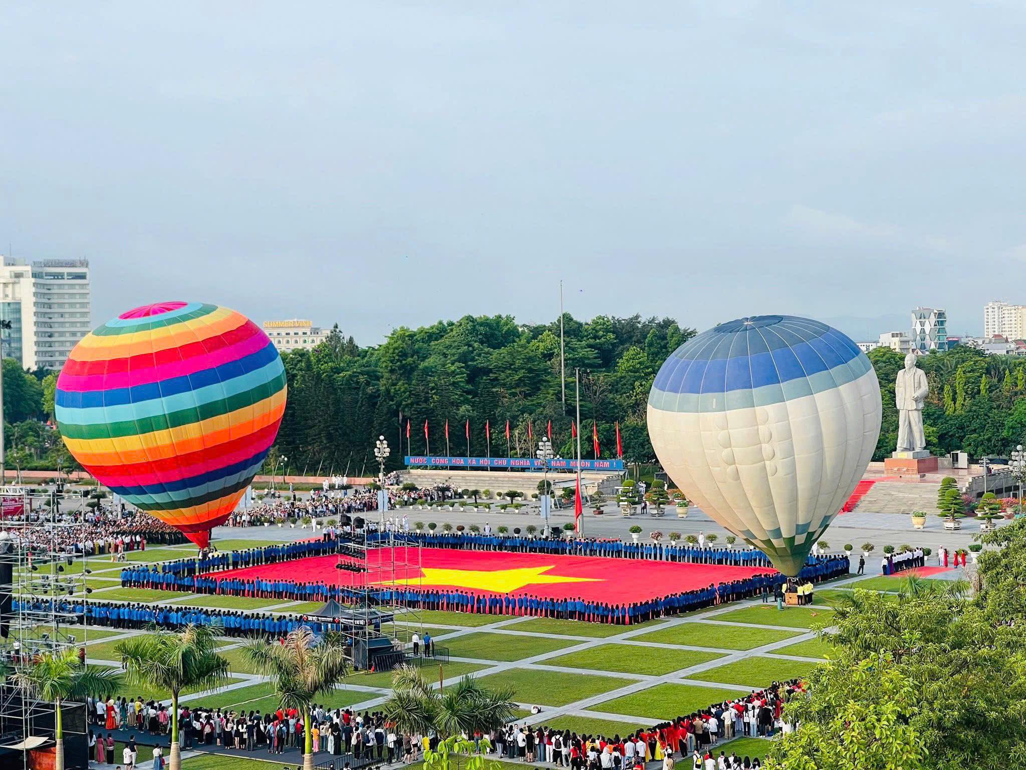 Sáng 19/5, hơn 2000 đoàn viên thanh niên tỉnh Nghệ An tham gia Lễ chào cờ và bay đại kỳ Tổ quốc nhân kỷ niệm 135 năm Ngày sinh Chủ tịch Hồ Chí Minh (19/5/1890 - 19/5/2025). Tại buổi lễ, 2 khí cầu mang lá cờ Tổ quốc có diện tích 2.025m² đã được bay lên bầu trời tạo nên khoảnh khắc thiêng liêng, thể hiện lòng thành kính, niềm tự hào và biết ơn sâu sắc đối với Chủ tịch Hồ Chí Minh - lãnh tụ vĩ đại của dân tộc Việt Nam. Chương trình đã góp phần giáo dục truyền thống yêu nước, khơi dậy tinh thần đoàn kết và trách nhiệm của các tầng lớp nhân dân, nhất là thế hệ trẻ, trong công cuộc xây dựng và bảo vệ Tổ quốc.